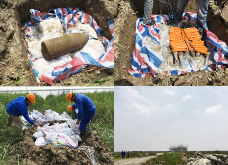 受台州市公安局的委托,ky在线官网于2016年5月4日在台州市椒江区三甲街道台州湾循环经济产业集聚区内,对台州市各下辖区县近年来收缴的各类废旧炮弹进行集中统一爆破销毁。销毁的废旧炮弹有炮弹、手榴弹、航弹、地雷、手雷、小型鱼雷等86件(其中最大一枚重达300kg),各种子弹17097件。