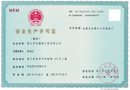 ZHEJIANG JING'AN BLASTING ENGINEERING CO., LTD